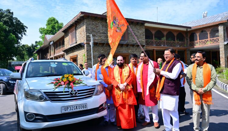 देहरादून। मुख्यमंत्री पुष्कर सिंह धामी ने शुक्रवार को मुख्यमंत्री आवास देहरादून से कुशीनगर जनपद में भगवान सूर्य की मूर्ति के जलाभिषेक के लिए कलश यात्रा का फ्लैग ऑफ किया।