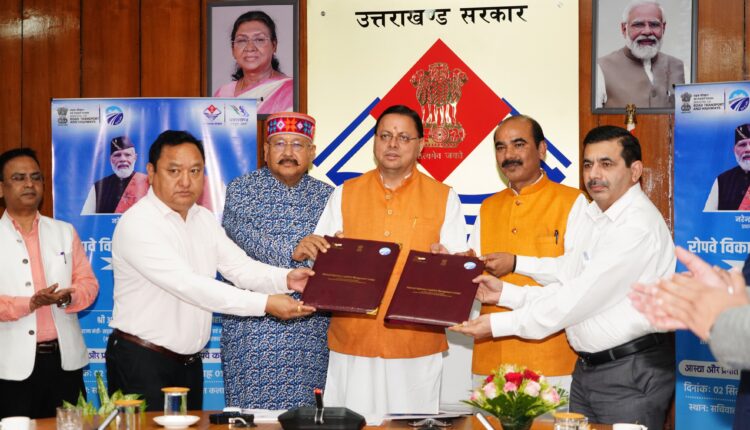मुख्यमंत्री पुष्कर सिंह धामी की उपस्थिति में मंगलवार को सचिवालय में पर्वतमाला परियोजना के अन्तर्गत केदारनाथ और हेमकुंड साहिब में रोपवे के विकास के लिए राज्य सरकार और नेशनल हाईवे लॉजिस्टिक्स मैनेजमेंट लिमिटेड (एनएचएलएमएल) के बीच समझौता हुआ।