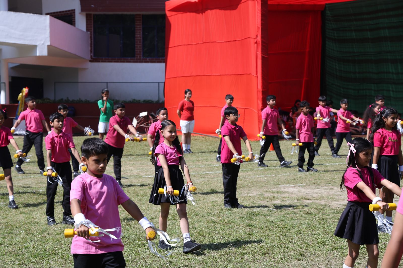 प्रतियोगिताओं के अतिरिक्त, कक्षा 3 के विद्यार्थियों ने सुंदर योगा ड्रिल प्रस्तुत की, वहीं कक्षा 4 के विद्यार्थियों ने अपनी शक्ति और तालमेल का परिचय डंबल ड्रिल के माध्यम से दिया। कक्षा 1 और 2 के विद्यार्थियों द्वारा प्रस्तुत एरोबिक्स प्रदर्शन ने ताल, ऊर्जा और समन्वय का शानदार उदाहरण प्रस्तुत किया, जिसने दर्शकों की खूब सराहना बटोरी।