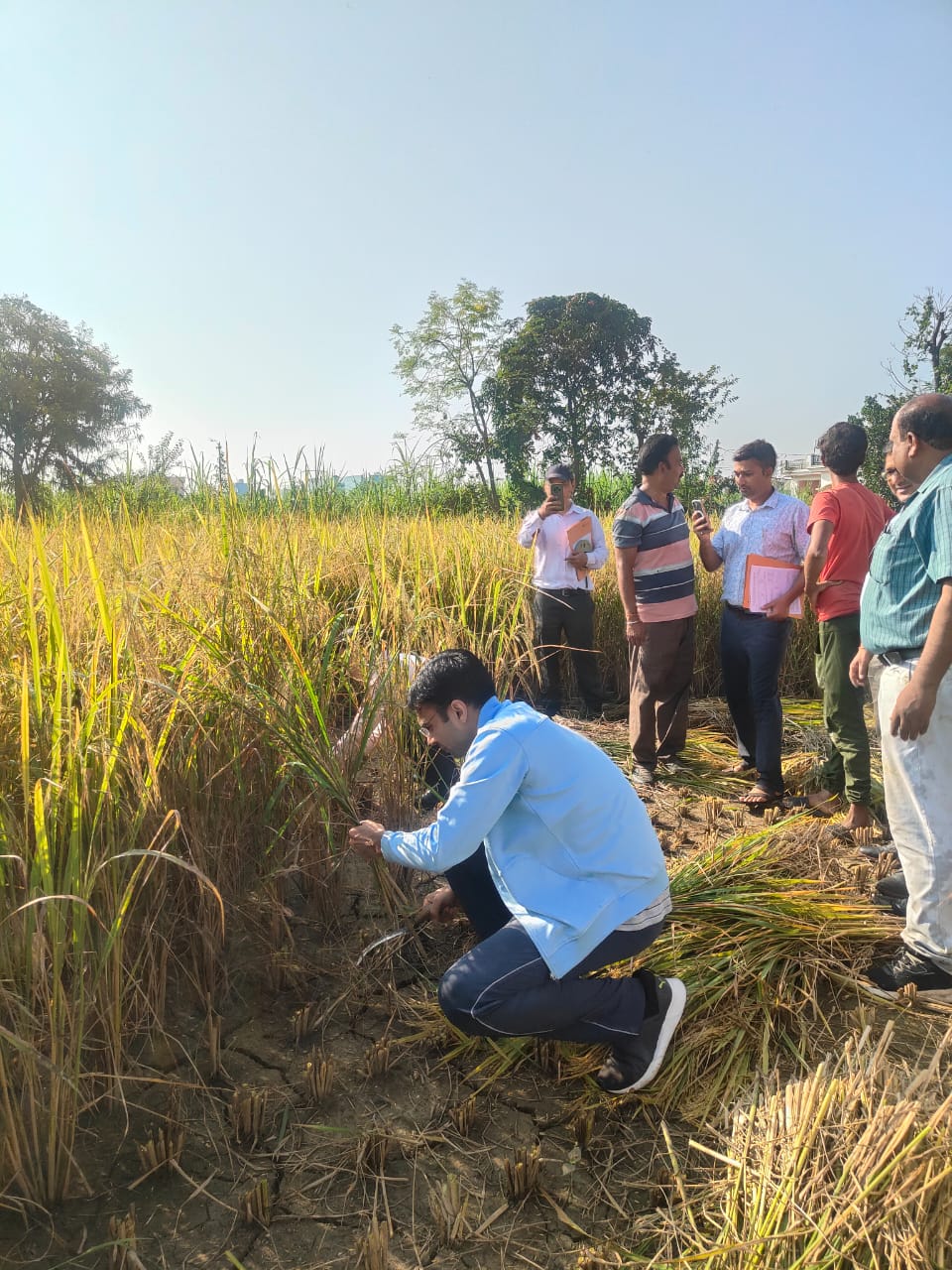 जिलाधिकारी सविन बंसल ने तहसील देहरादून के ग्राम आर्केडियाग्रांट में फसल धान के फसल कटाई प्रयोग का निरीक्षण किया। इस दौरान जिलाधिकारी ने कृषकों संग खेत में धान की कटाई भी की । जिसमें 43.30वर्ग मीटर के प्लॉट में 17 किलो 500ग्राम धान की उपज प्राप्त हुई प्रयोग का संपादन राजस्व उप निरीक्षक द्वारा जी सी ई एस एवं सीसीई एग्री ऐप द्वारा किया गया एवं खेत से ही उत्पादन के डाटा को भारत सरकार के पोर्टल पर अपलोड किया गया उक्त आंकड़ों का प्रयोग फसलों के औसत उपज एवं प्रधानमंत्री फसल बीमा योजना अंतर्गत किया जाता है।