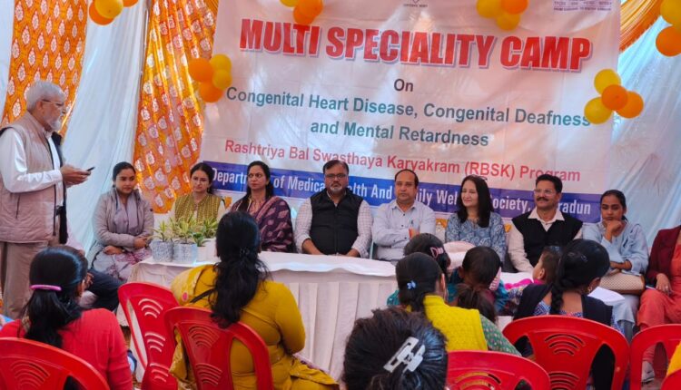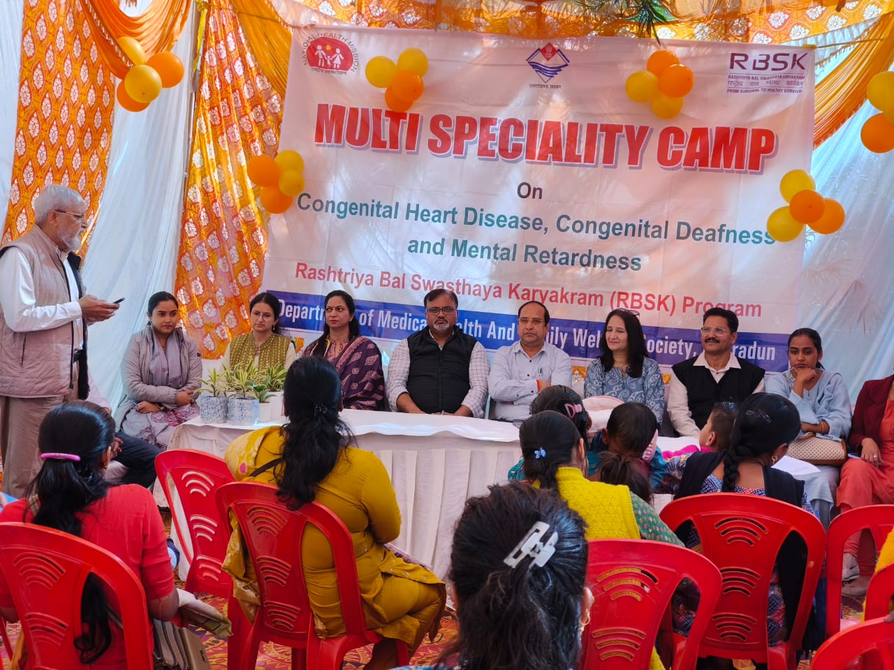 उत्तराखण्ड राज्य स्थापना की रजत जयंती समारोह के अवसर पर जिला चिकित्सालय देहरादून के डी0ई0आई0सी0 केन्द्र में मल्टी स्पेशियलिटी कैम्प का आयोजन किया गया। कैंप में 300 से अधिक बच्चों की निःशुल्क स्वास्थ्य जांच करने के साथ-साथ आवश्यक उपचार उपलब्ध कराया गया। कैंप में उपस्थित बच्चों की बाल रोग संबंधी 26, नाक कान गला रोग संबंधी 74, नेत्र रोग संबंधी 98, तथा 42 अन्य रोगों से संबंधित जांच की गयी। कैंप में बच्चों को सूक्ष्म जलपान एवं गिफ्ट वितरति किये गये।